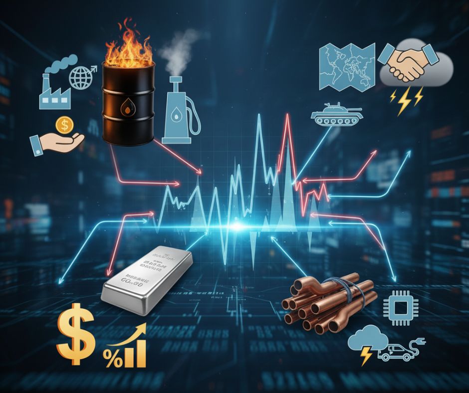 Giá dầu thô, khí tự nhiên, bạc và đồng chịu ảnh hưởng từ hàng loạt yếu tố: cung – cầu, địa chính trị, chính sách tiền tệ, sản lượng khai thác, xu hướng công nghệ và tâm lý thị trường.